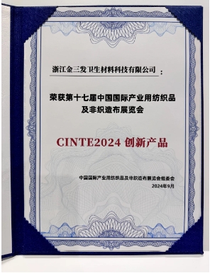Zhejiang Kingsafe স্যানিটারি ম্যাটেরিয়াল টেকনোলজি কোং লিমিটেডের জমা দেওয়া "গ্রিন সুপার সফট স্যান্ডউইচ স্পুনলেস ননওভেন" সবুজ উন্নয়ন উদ্ভাবন পণ্য জিতেছে।
