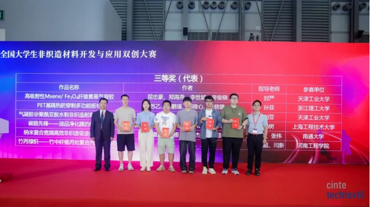 চায়না ন্যাশনাল টেক্সটাইল অ্যান্ড অ্যাপারেল কাউন্সিলের ভাইস প্রেসিডেন্ট লি লিংশেন, চায়না ন্যাশনাল টেক্সটাইল অ্যান্ড অ্যাপারেল কাউন্সিলের ভাইস প্রেসিডেন্ট লিয়াং পেংচেং এবং আন্তর্জাতিক বাণিজ্যের প্রচারের জন্য চায়না কাউন্সিলের টেক্সটাইল ইন্ডাস্ট্রি শাখার নির্বাহী ভাইস প্রেসিডেন্ট নি ইয়াংশেং, চায়না টেক্সটাইল-এর প্রেসিডেন্ট নি ইয়াংশেং। এবং অ্যাপারেল এডুকেশন সোসাইটি, লি গুইমি, চায়না ইন্ডাস্ট্রিয়াল টেক্সটাইল ইন্ডাস্ট্রি অ্যাসোসিয়েশনের প্রেসিডেন্ট, শিক্ষা মন্ত্রণালয়ের কলেজ ও বিশ্ববিদ্যালয়ের টেক্সটাইল প্রফেশনাল টিচিং স্টিয়ারিং কমিটির ননওয়েভেন ম্যাটেরিয়ালস অ্যান্ড ইঞ্জিনিয়ারিং সাবকমিটির ডিরেক্টর কিয়ান জিয়াওমিং, তিয়ানজিন পলিটেকনিক ইউনিভার্সিটির স্কুল অফ টেক্সটাইল সায়েন্স অ্যান্ড ইঞ্জিনিয়ারিংয়ের অধ্যাপক ঝু ফিচাও, ডিসিপ্লিন কনস্ট্রাকশনের উপ-পরিচালক। Zhejiang Sci-Tech University এর বিভাগ, Yu Lan, ডেপুটি সেক্রেটারি সুচো ইউনিভার্সিটির স্কুল অফ টেক্সটাইল অ্যান্ড অ্যাপারেল ইঞ্জিনিয়ারিং এর, ইয়ান ইয়ান, ঝেজিয়াং কিংসান্ডা গ্রুপ কোং লিমিটেডের ভাইস চেয়ারম্যান, জুও হংইয়ুন, জিয়াংসু বাইজিয়ালি নিউ মেটেরিয়াল টেকনোলজি কোং লিমিটেডের চেয়ারম্যান, হেনানের জেনারেল ম্যানেজার চেন হুয়া Yixiang হেলথ টেকনোলজি কোং, লিমিটেড, শান লেই, জিয়ামেন ডাংশেং নিউ মেটেরিয়ালস কোং এর মার্কেটিং ডিরেক্টর, লিমিটেড, এবং অন্যান্য নেতৃস্থানীয় অতিথিদের পাশাপাশি এই প্রতিযোগিতার পুরস্কারপ্রাপ্ত শিক্ষার্থী, অংশগ্রহণকারী বিশ্ববিদ্যালয়ের শিক্ষক ও ছাত্র প্রতিনিধিরা পুরস্কার বিতরণী অনুষ্ঠানে উপস্থিত ছিলেন। সভায় সভাপতিত্ব করেন তিয়ানজিন পলিটেকনিক ইউনিভার্সিটির প্রফেসর ফেং ইয়ান।